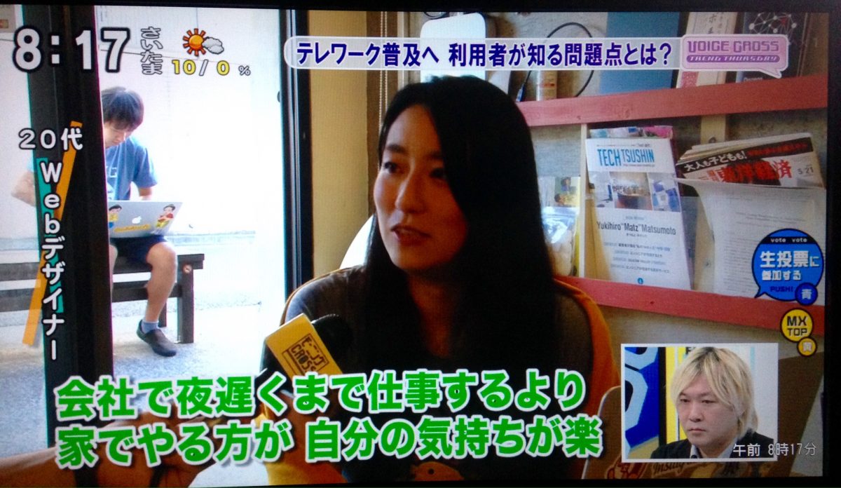 TOKYO MX の今日朝のニュース番組「モーニングCROSS」の「VOICE CROSS」というコーナーで、ちょっとだけですがテレビ出演しました!